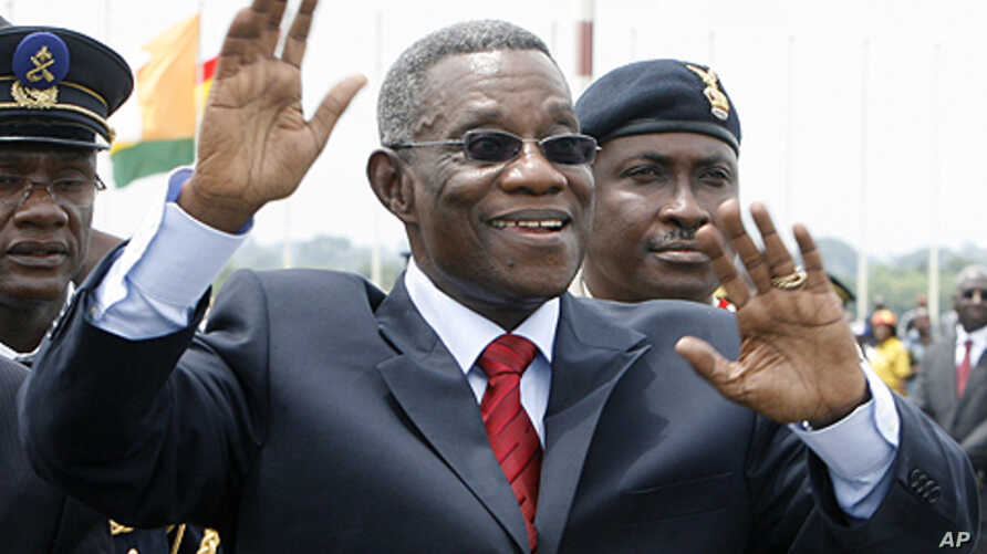 Former President Jerry John Rawlings laid a wreath on the tomb of the late President Mills at the Asomdwee Park in Accra.