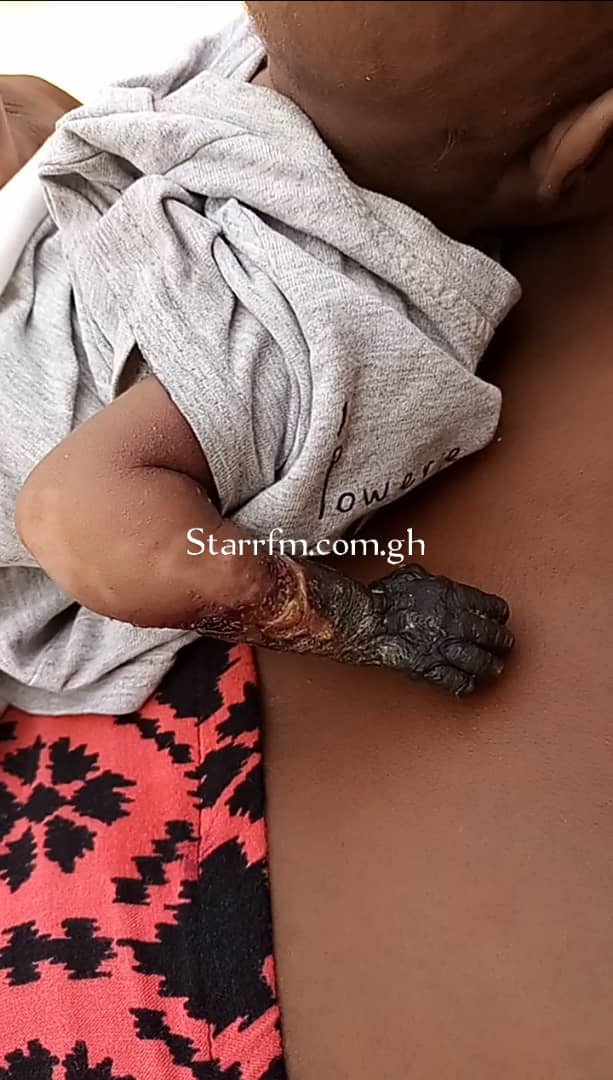 The right hand of a one-year-old baby is rotting due to alleged medical negligence by a clinician at St. Dominic Hospital in Akwatia in the Denkyembuor District in Eastern Region.
